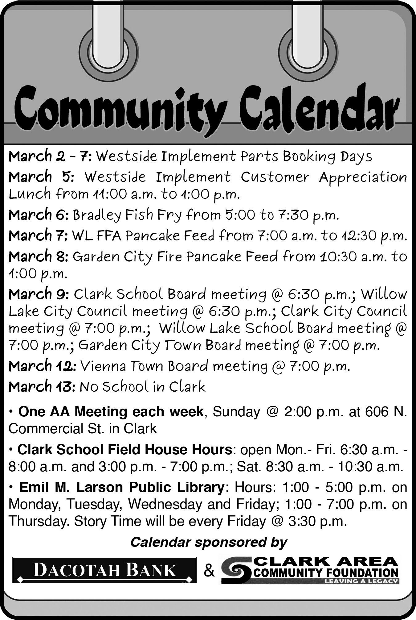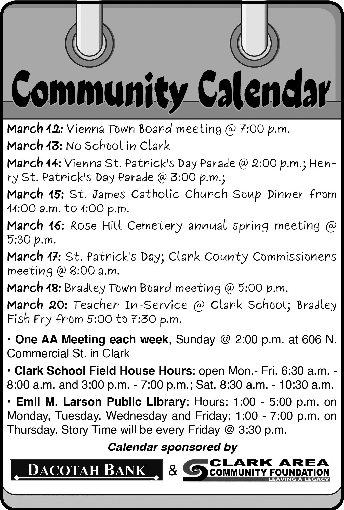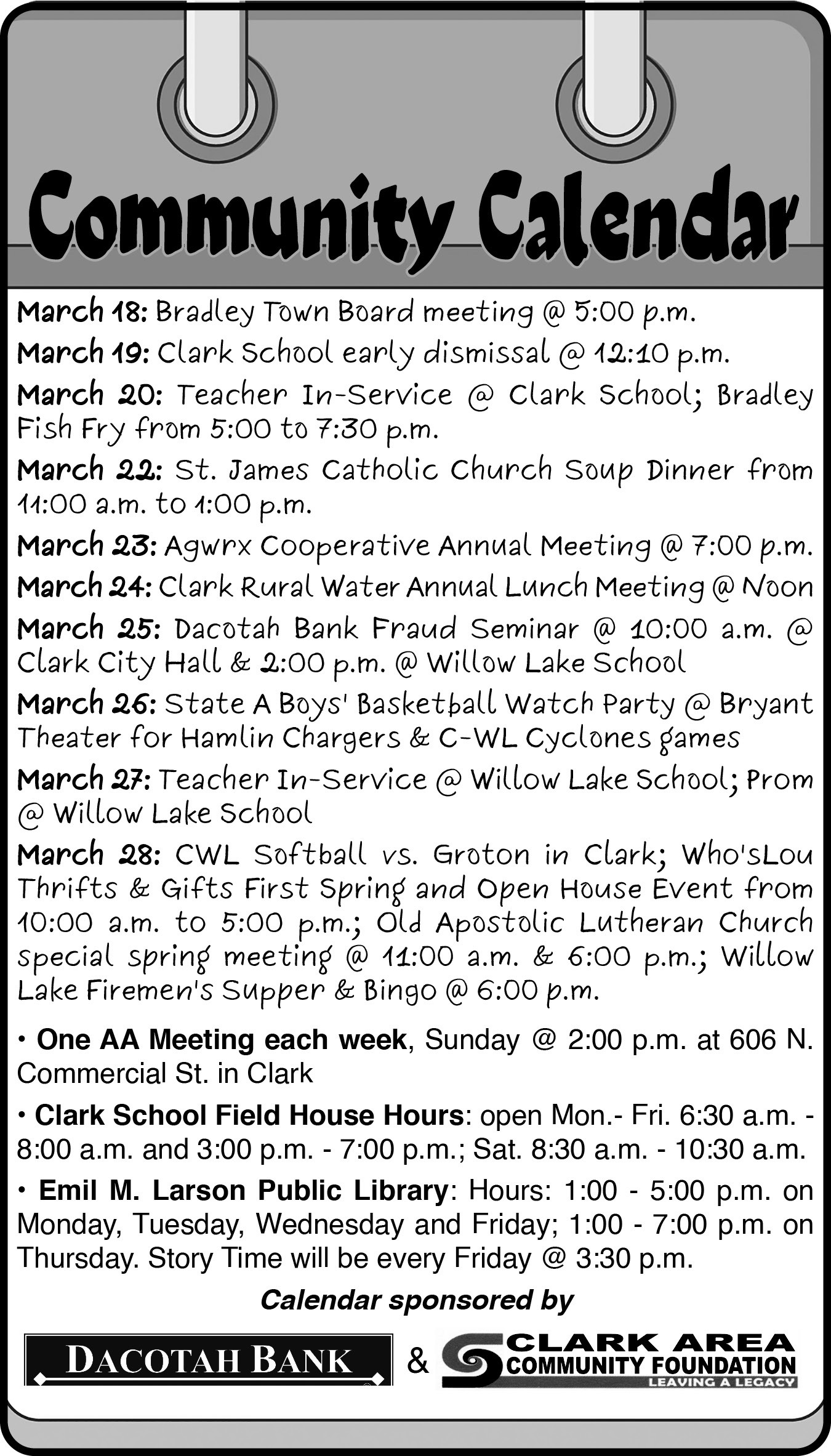 All South Dakota newspapers have cooperated to host a website listing all government public notices previously published in newspapers across the state. The searchable public notices website is provided to the public by South Dakota newspapers at no cost to state and local governments.