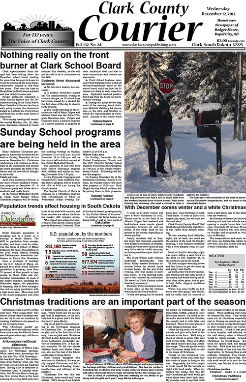 Posted inFront Page 2012-12-12 Clark Courier front pageDecember 11, 2012Posted inFront Page Here's the scoop on snow. Dig a little further by clicking above to subscribe Post navigationPrevious Post 2012-12-12 Clark County CourierNext Post2012-12-19 Clark County Courier