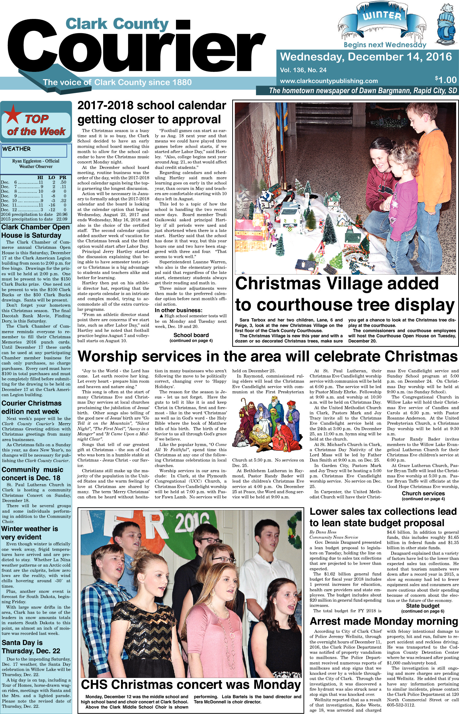 Posted inFront Page 2016-12-14 Courier front pageDecember 17, 2016Posted inFront PageRead the front page of the December 14, 2016 Courier. Subscribe for more. Post navigationPrevious Post 2016-12-14 Clark CourierNext Post2016-12-21 Clark Courier