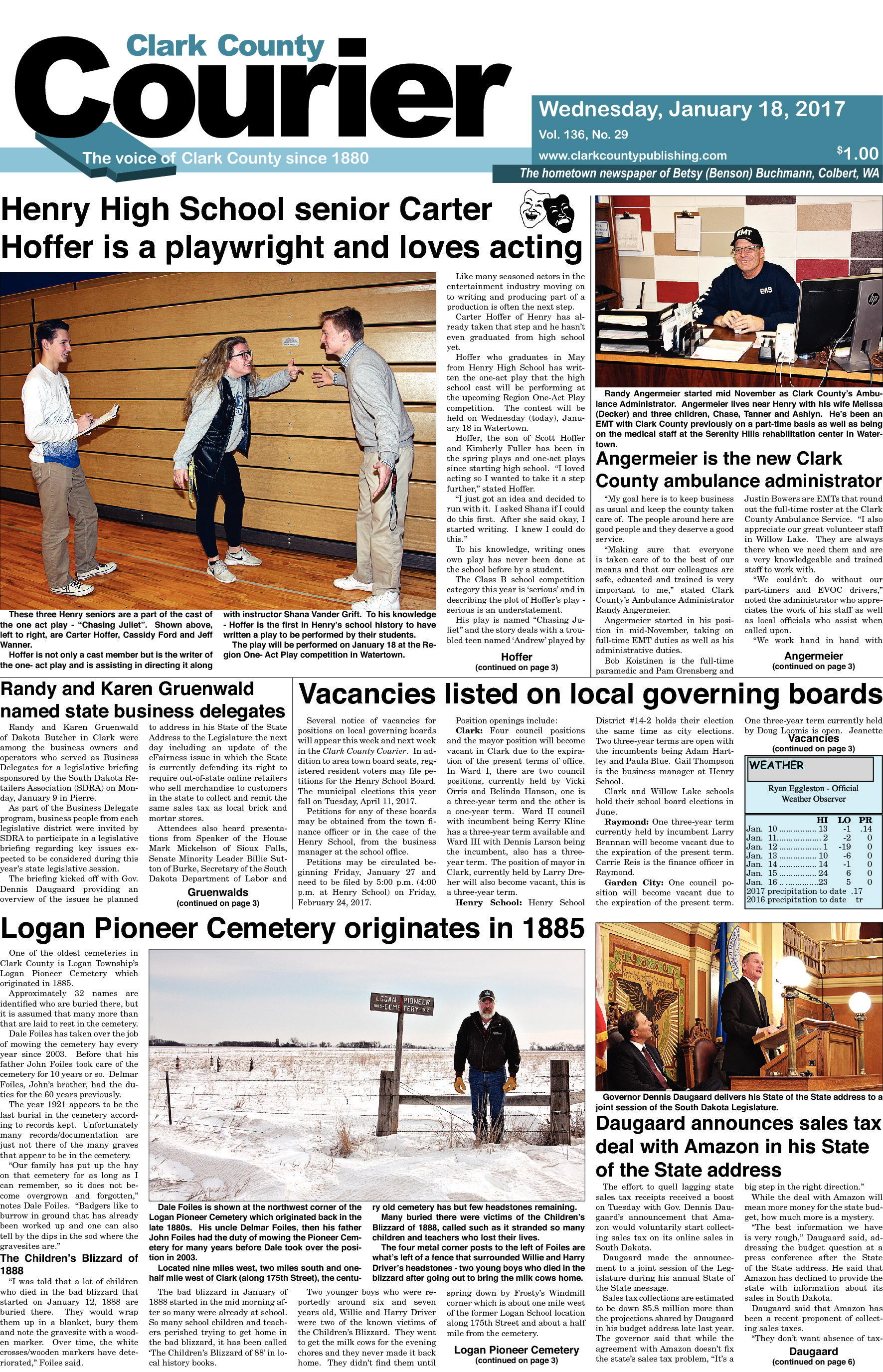 Posted inFront Page 2017-1-18 Courier front pageJanuary 21, 2017Posted inFront PageRead the Courier front page for January 18, 2017. Subscribe for more. Post navigationPrevious Post 2017-1-18 Clark CourierNext Post2017-1-25 Clark Courier