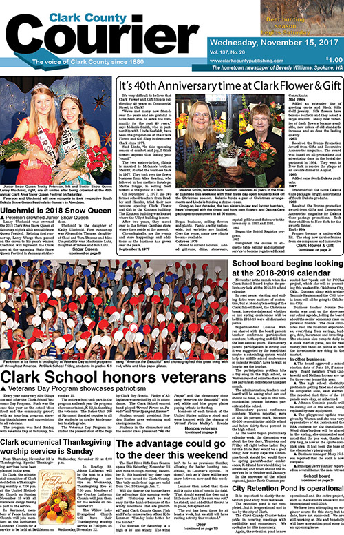 Posted inFront Page 2017-11-15 Courier front pageNovember 18, 2017Posted inFront PageRead the Courier front page for November 15, 2017. Subscribe for more. Post navigationPrevious Post 2017-11-15 Clark CourierNext Post2017-11-22 Clark Courier