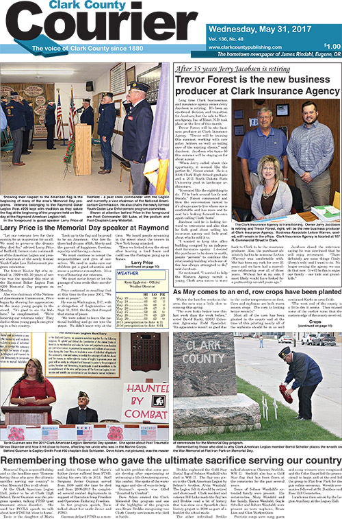 Posted inFront Page 2017-5-31 Courier front pageJune 3, 2017Posted inFront PageRead the Courier front page for May 31, 2017. Subscribe for more. Post navigationPrevious Post 2017-5-31 Clark CourierNext Post2017-6-7 Clark Courier
