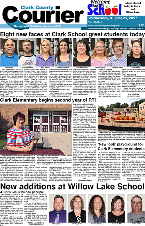 Posted inFront Page 2017-8-23 Courier front pageAugust 26, 2017Posted inFront PageTry the Courier front page for August 23, 2017. Subscribe for more. Post navigationPrevious Post 2017-8-23 Clark CourierNext Post2017-8-30 Clark Courier