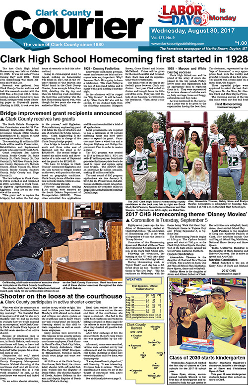 Posted inFront Page 2017-8-30 Courier front pageSeptember 2, 2017Posted inFront PageRead the Courier front page for August 30, 2017. Subscribe for more. Post navigationPrevious Post 2017-8-30 Clark CourierNext Post2017-9-6 Clark Courier
