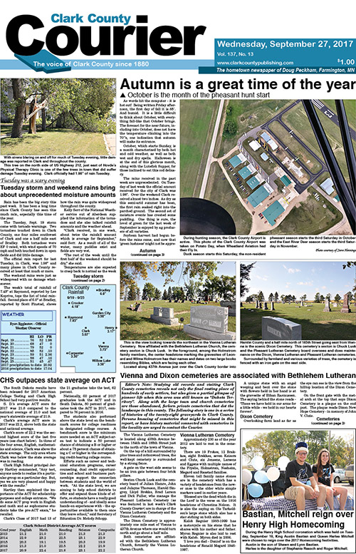 Posted inFront Page 2017-9-27 Courier front pageSeptember 30, 2017Posted inFront PageRead the Courier front page for September 27, 2017. Subscribe for more. Post navigationPrevious Post 2017-9-27 Clark CourierNext Post2017-10-4 Clark Courier