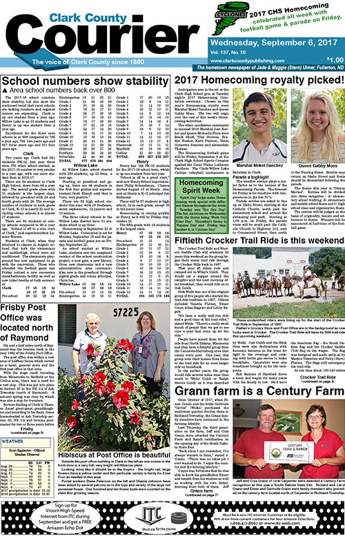 Posted inFront Page 2017-9-6 Courier front pageSeptember 9, 2017Posted inFront PageRead the Courier front page for September 6, 2017. Subscribe for more. Post navigationPrevious Post 2017-9-6 Clark CourierNext Post2017-9-13 Clark Courier