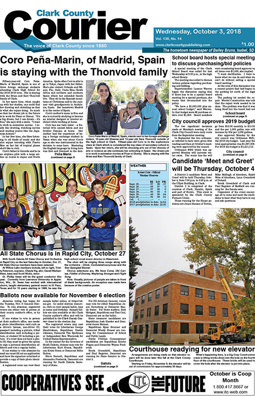 Posted inFront Page 2018-10-3 Clark Courier front pageOctober 6, 2018Posted inFront Page10-3 Clark Courier front page Post navigationPrevious Post 2018-10-03-Clark County CourierNext Post2018-10-10 Clark Courier front page