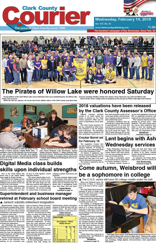 Posted inFront Page 2018-2-14 Courier front pageFebruary 17, 2018Posted inFront PageRead the 2-14-2018 Courier front page. Subscribe for more. Post navigationPrevious Post 2018-2-14 Clark CourierNext Post2018-2-21 Clark County Courier