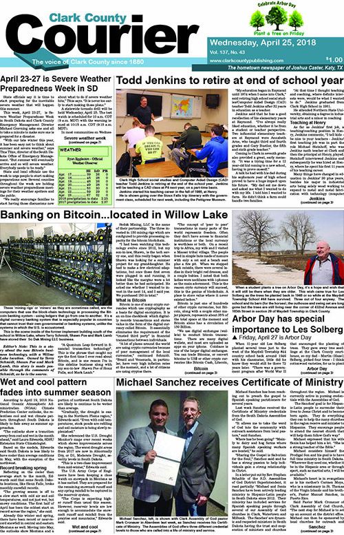 Posted inFront Page 2018-4-25 Clark Courier Front PageApril 24, 2018Posted inFront Page Post navigationPrevious Post 2018 4-25 Clark Courier FullNext Post2018-5-2 Clark Courier
