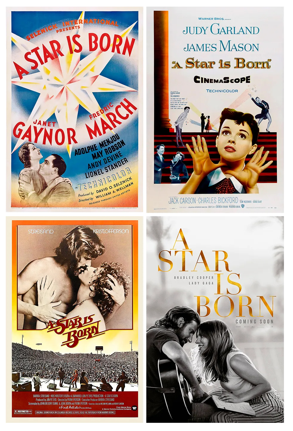 My favorite A Star is Born is the 2018 version with Lady Gaga and Bradley Cooper, because the story is great, the acting is marvelous, and the music is superb. Next, is the original 1937 version that started it all. If I hadn't liked that one, I wouldn't have watched the rest of them. Then, the 1954 version with Judy Garland. I can't rank the 1976 version, as I haven't seen it.