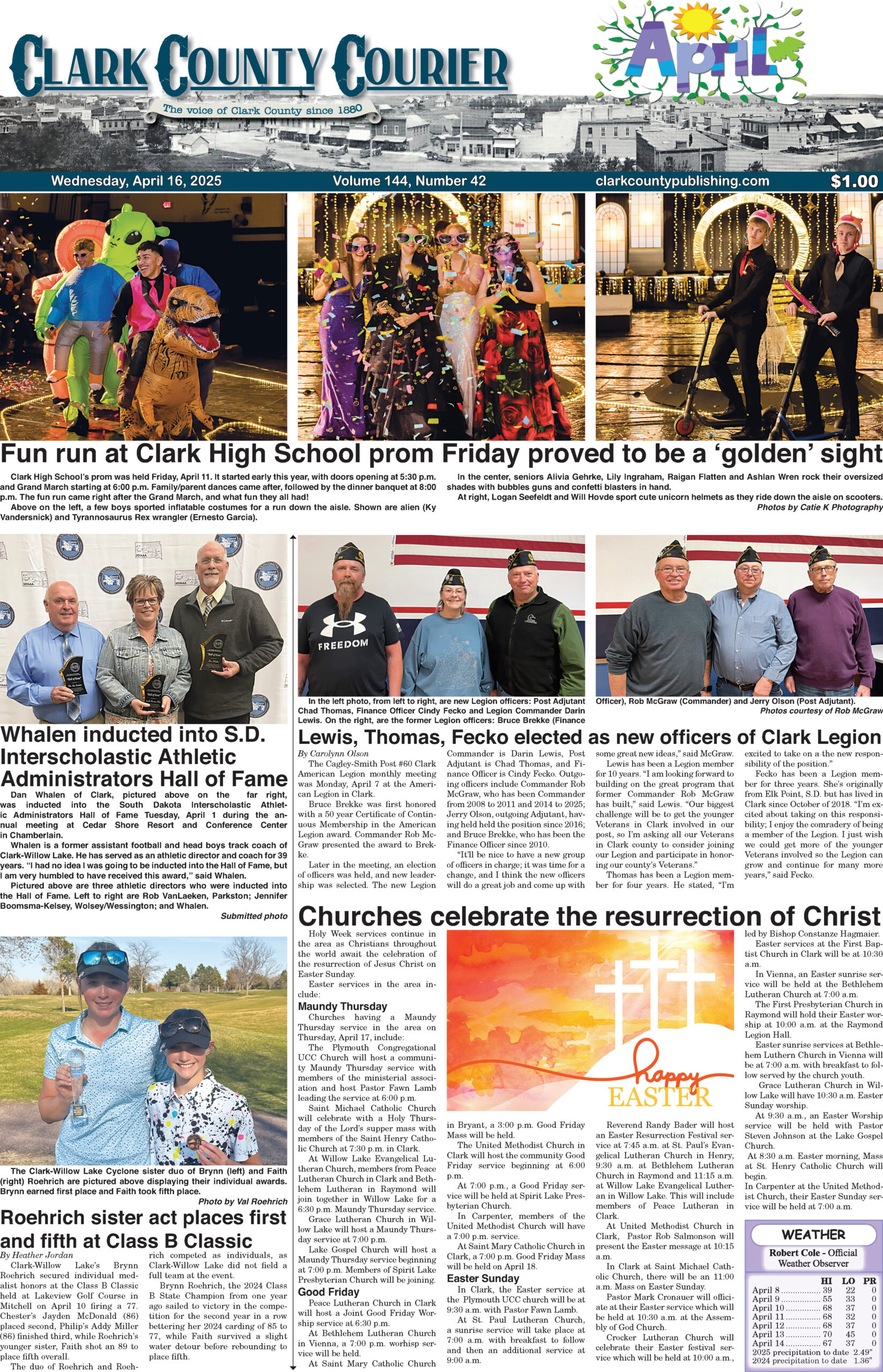 Posted inFront Page April 16, 2025 Clark Courier Front PageApril 15, 2025No CommentsPosted inFront PageClick here to download full editionPost navigationPrevious Post April 16, 2025 Clark County CourierNext PostBlossoms in the Dust