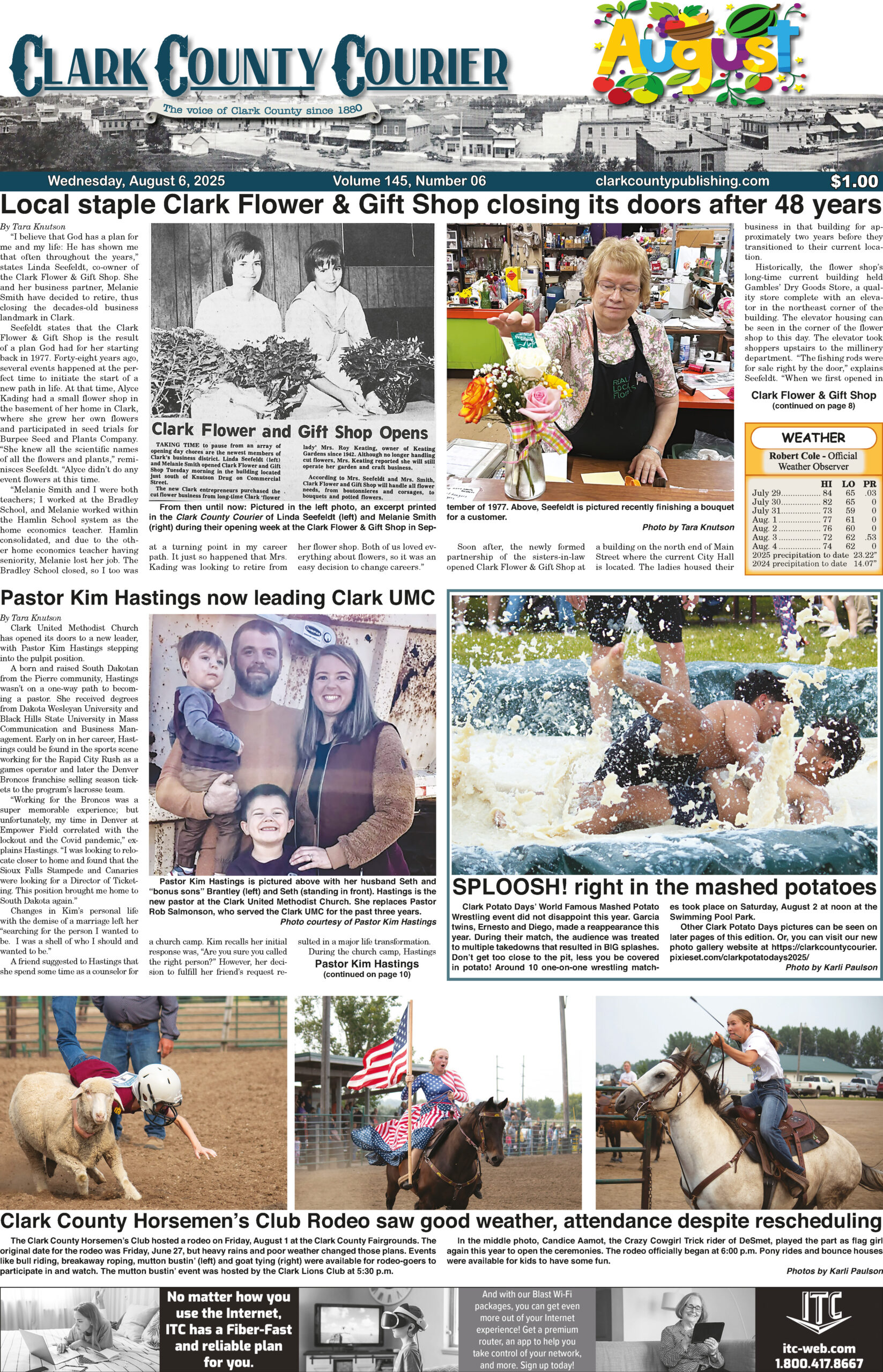 Posted inFront Page August 6, 2025 Clark Courier Front PageAugust 5, 2025No CommentsPosted inFront PageClick here to view the full editionPost navigationPrevious Post August 6, 2025 Clark County CourierNext PostLocal staple Clark Flower & Gift Shop closing its doors after 48 years