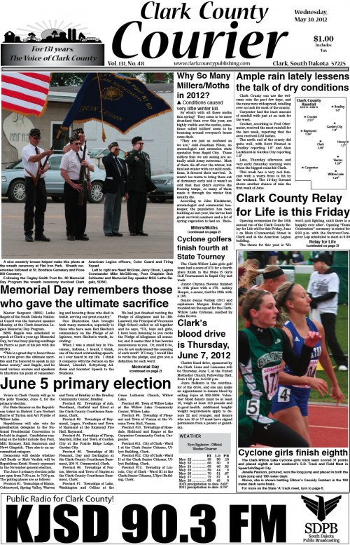 Posted inOnline Edition CCC 5-30-2012 in COLOR!May 31, 2012Posted inOnline EditionHey, this is our color experiment. Finally. Hope you enjoy. Click here to see the color edition of the 5-30 Clark County Courier.Post navigationPrevious Post Clark County Courier 5-30-2012Next PostCCC week of 6-6-2012