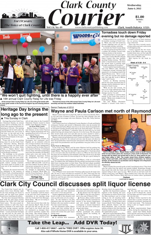 Posted inFront Page color edition of 6-6-2012June 7, 2012Posted inFront PageHere is the color version Click here to view the Clark County Courier in colorPost navigationPrevious Post CCC week of 6-6-2012Next PostClark County Courier 6-13-2012
