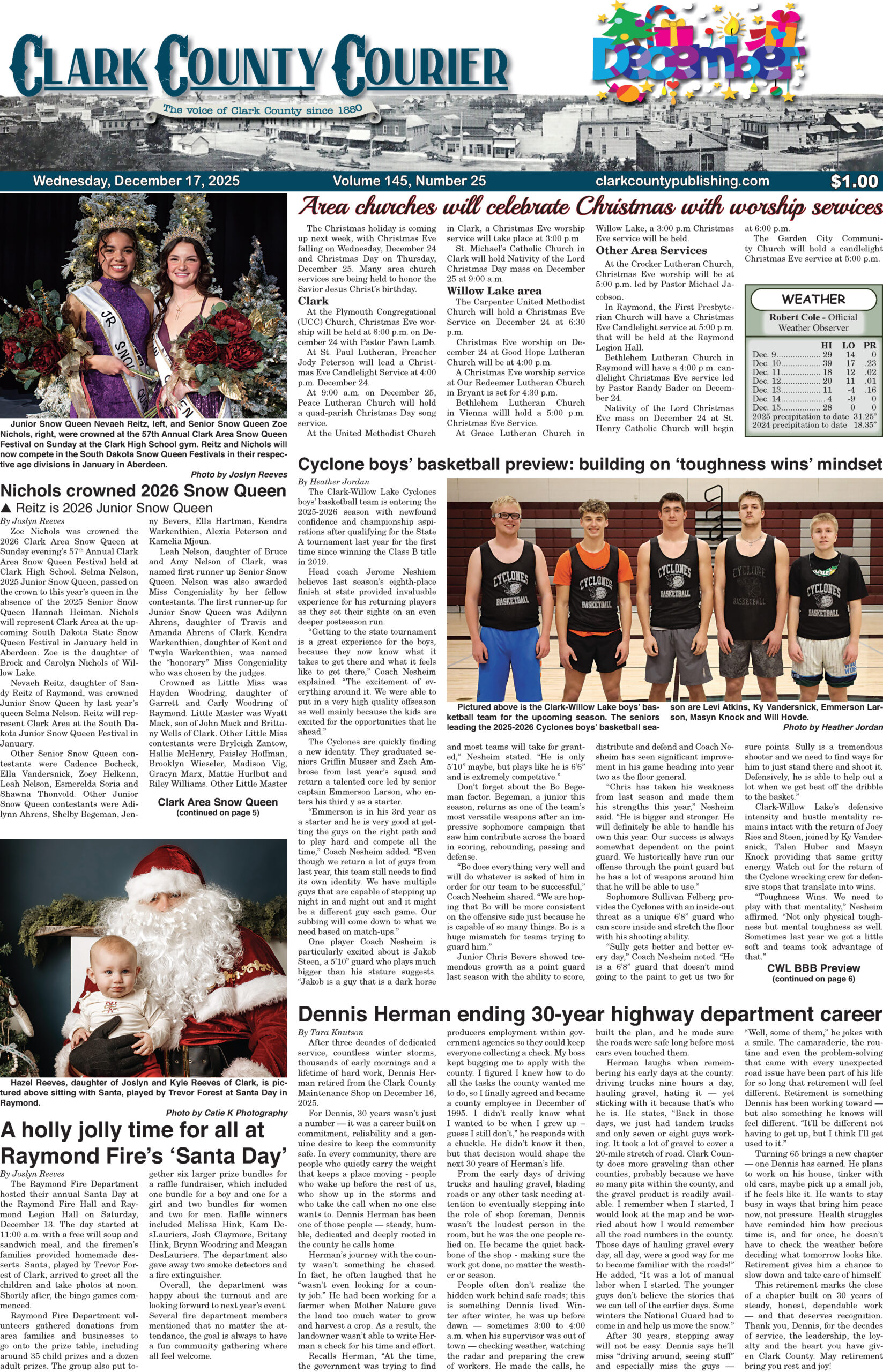 Posted inFront Page December 17, 2025 Clark Courier Front PageDecember 16, 2025No CommentsPosted inFront PageClick here to view full edition with your subscriptionPost navigationPrevious Post December 17, 2025 Clark County CourierNext PostNichols crowned 2026 Snow Queen