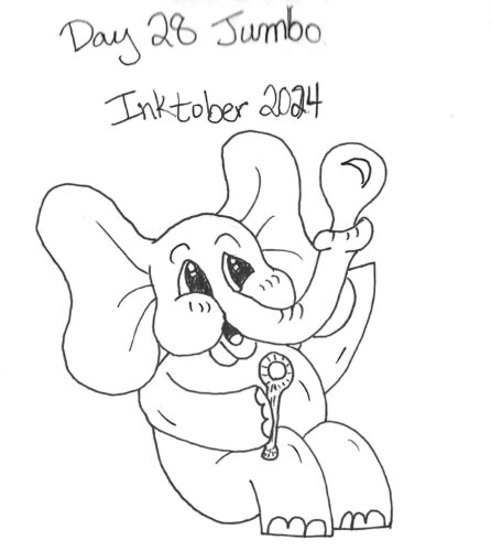 Day 28, Jumbo: I was always going to draw an elephant for this prompt. Just wasn't sure what it should be doing. That didn't last long as I just had to think about Dumbo and "Pink Elephants on Parade."