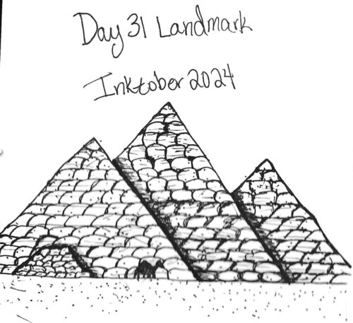 Day 30, Violin: Again, I didn't really want to just draw a violin, so I inspired one. I got really bored with the prompts this year unfortunately. There weren't many that struck a chord of creativity within me. And so, we have the Pyramids of Giza for my last Inktober creation.