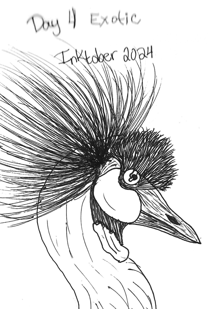 Day 4, Exotic: I wasn't to sure what to draw for exotic at first, but I figured I would end up drawing a flower or bird. I'm pretty proud of this one. The bird is a grey crowned crane