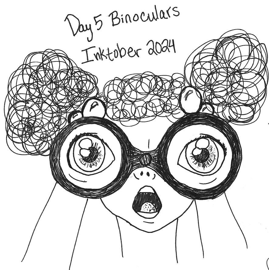Day 5, Binoculars: I knew what I wanted to do with this one; the only problem was the execution, mostly in the hands/arms. I struggle so much with hands/arms, and I could not for the life of me get it to look the way I wanted, so I left it here.