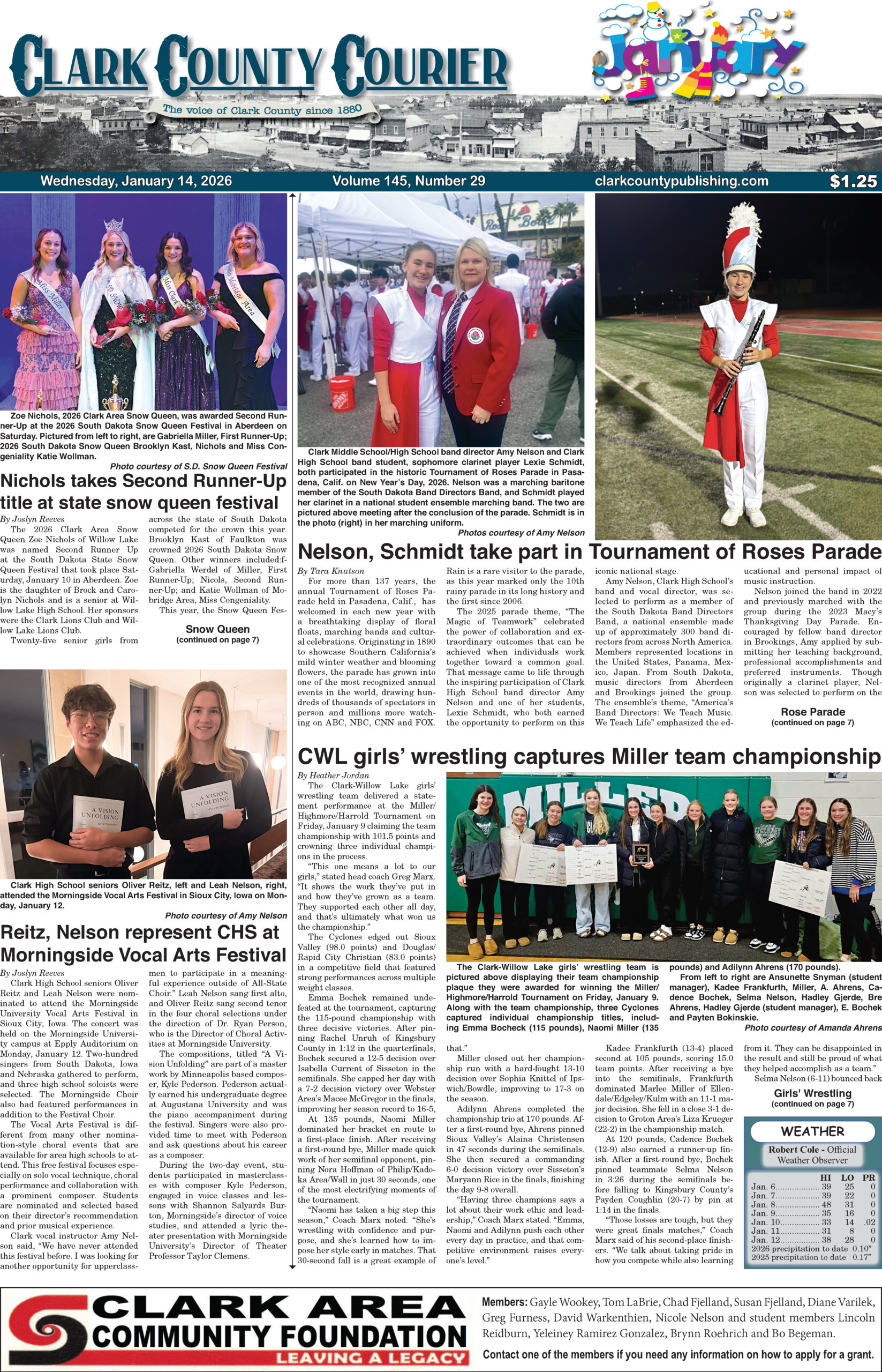 Posted inFront Page January 14, 2026 Clark Courier Front PageJanuary 13, 2026No CommentsPosted inFront PageClick here to view full edition with your subscriptionPost navigationPrevious Post January 14, 2026 Clark County CourierNext PostNelson, Schmidt take part in Tournament of Roses Parade