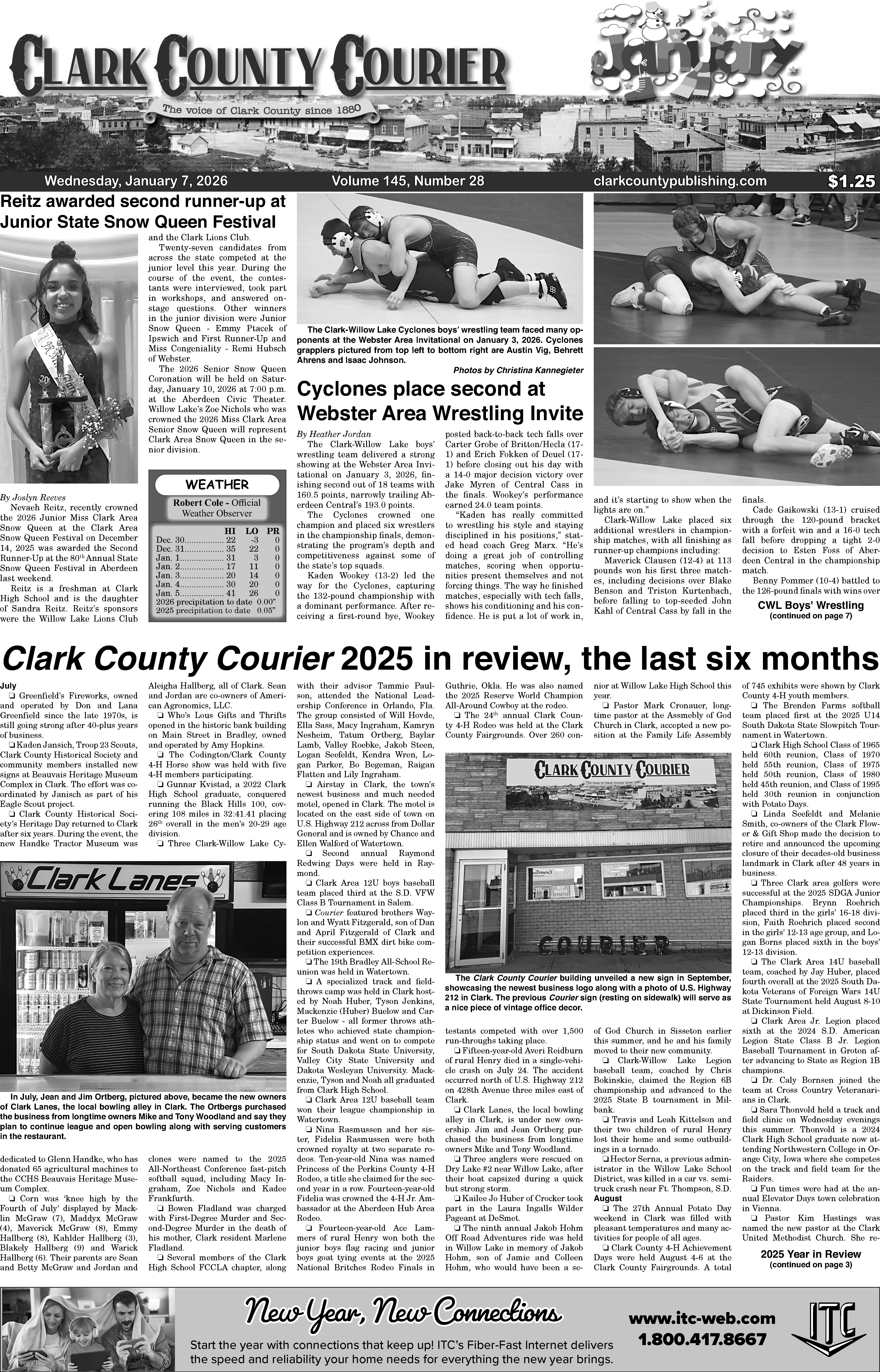 Posted inFront Page January 7, 2026 Clark Courier Front PageJanuary 6, 2026No CommentsPosted inFront PageClick here to view full edition with your subscriptionPost navigationPrevious Post January 7, 2026 Clark County CourierNext PostLincoln Reidburn’s lasting impact on Clark County Fairgrounds
